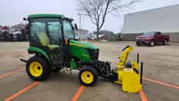Clean 2022 John Deere 2025R cab tractor with front quick hitch. This machine features a factory cab with heat, a radio, and front wiper. It features a front quick hitch, allowing you to connect to the included snowblower and broom, and is loader ready. With only 335 hours, this machine has a lot of work left in it.