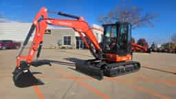 New Kubota U55-5 with 30″ trenching bucket, dozer blade and hydraulic thumb. Includes quick attach. 18″ and 24″ buckets also available.