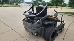 Clean Spartan SRT-XD61 zero-turn mower. This mower is powered by a 38-horsepower Kawasaki FX1000EFI engine, and features fuel injection, an air ride seat, and a 61-inch deck. This a comfortable and high-powered mowing machine. Call Next Gen Equipment on this excellent mower today!